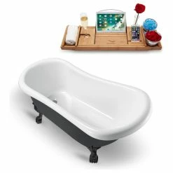 Budget ๐ Streamline 61″ Black Clawfoot Tub And Tray, Black Feet, Chrome Internal Drain ๐