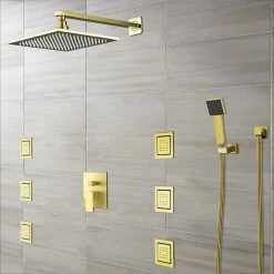 Buy 🤩 Homary Wall Mounted 10″ Shower System In Brushed Gold Rainfall Shower With Tub Spout ✔️