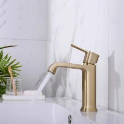 Cheap ๐ BathSelect Herault Deck-Mount Single Handle Bathroom Sink Faucet, Gold, Short ๐