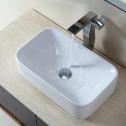 Best Pirce โ Kraus USA, Inc. Elavo Ceramic Rectangle Vessel White Sink, PU Drain Chrome ๐