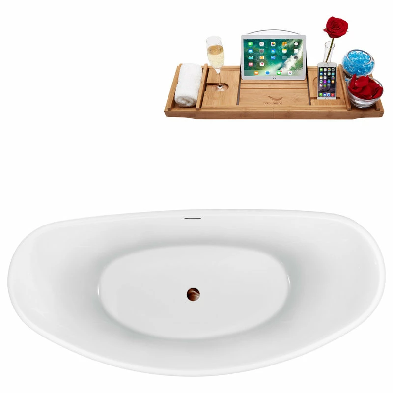 Put stressful days behind you with this luxury 63” Streamline N951ORB Freestanding Tub and Tray With Internal Drain, an all-time classic that has been upgraded for ultimate comfort. Measuring at 63 inches and with a capacity of 53 gallons, the 63” Streamline N951ORB Freestanding Tub and Tray With Internal Drain is ideal for endless relaxing baths. Made of 100% pure acrylic with a glossy white finish, this upgraded bathtub features a seamless overflow design that will add a touch of luxury and elegance to your space. This model comes with a matte oil rubbed bronze pop up drain.