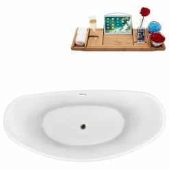 This 75” Streamline N950BNK Freestanding Tub and Tray With Internal Drain was specially designed to grant a fresh look in your bathroom and provide you with the ultimate comfort. With a capacity of 90 gallons, the upgraded 75” Streamline N950BNK Freestanding Tub and Tray With Internal Drain guarantees a joyful bathing experience – exactly what you deserve after a long day at work. It is made of 100% pure acrylic and comes with a slick, seamless overflow design, which gives the bathtub a unique look. The unified overflow design, in addition to the brushed nickel pop up drain, adds an artistic touch to the bathtub.