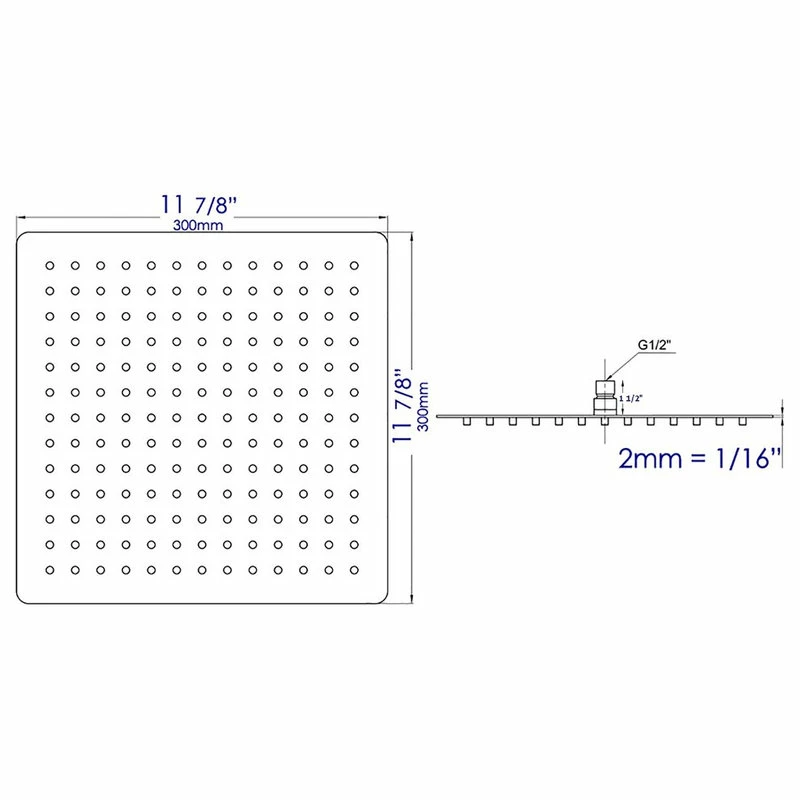 Solid Polished Stainless Steel 12″ Square Ultra Thin Rain Shower Head