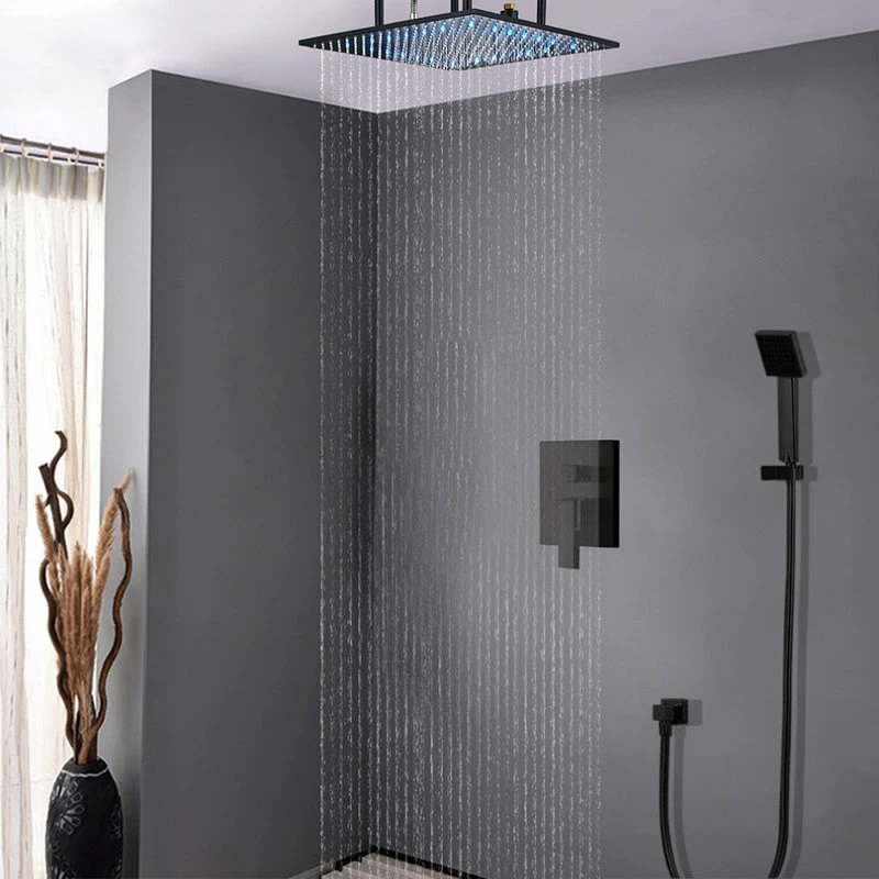 - The Shower head comes with 4 ceiling Matte Black mount arm