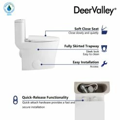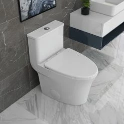 With its simple and modern design, this toilet fits any bathroom, especially those with limited space. Its lid has a soft close feature while allowing for quick installation or removal. This toilet is not challenging for you to install and the wider seat makes it more comfortable to use.