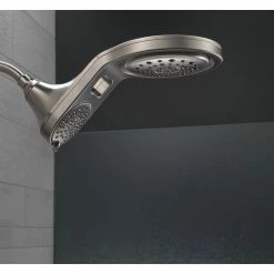 While other products may gather unsightly mineral build-up over time, Delta soft rubber Touch-Clean spray holes allow any mineral residue to simply be wiped away for an instantly refreshed look with no need for soaking or the aid of chemical cleaners. The pause setting gives you ample space for shaving, lathering and other shower tasks, then easily restarts the water with the temperature where you left off. This spray setting helps you conserve water, so you can worry less about depleting your supply of hot water – and you help the environment too. Delta WaterSense labeled faucets, showers and toilets use at least 20% less water than the industry standard saving you money without compromising performance. Create a luxurious shower experience with a Delta hand shower/shower head combination. Whether you’re remodeling your space or upgrading your existing setup, our hand shower/shower head combos will give you more flexibility and coverage in a variety of stunning styles.