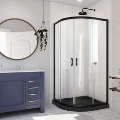 The DreamLine Prime sliding shower enclosure and base kit adds style and bold design to your shower space. The neo round sliding style of the Prime enclosure can fit into virtually any corner, making it perfect for smaller to midsize bathrooms, where space is limited. The Prime enclosure and SlimLine shower base kit provides the ultimate solution to your shower project! Dreamline DL-6701-89-09 Prime Shower Enclosure and Base Overview