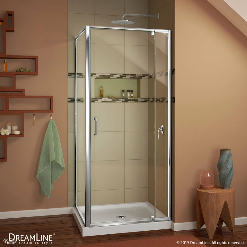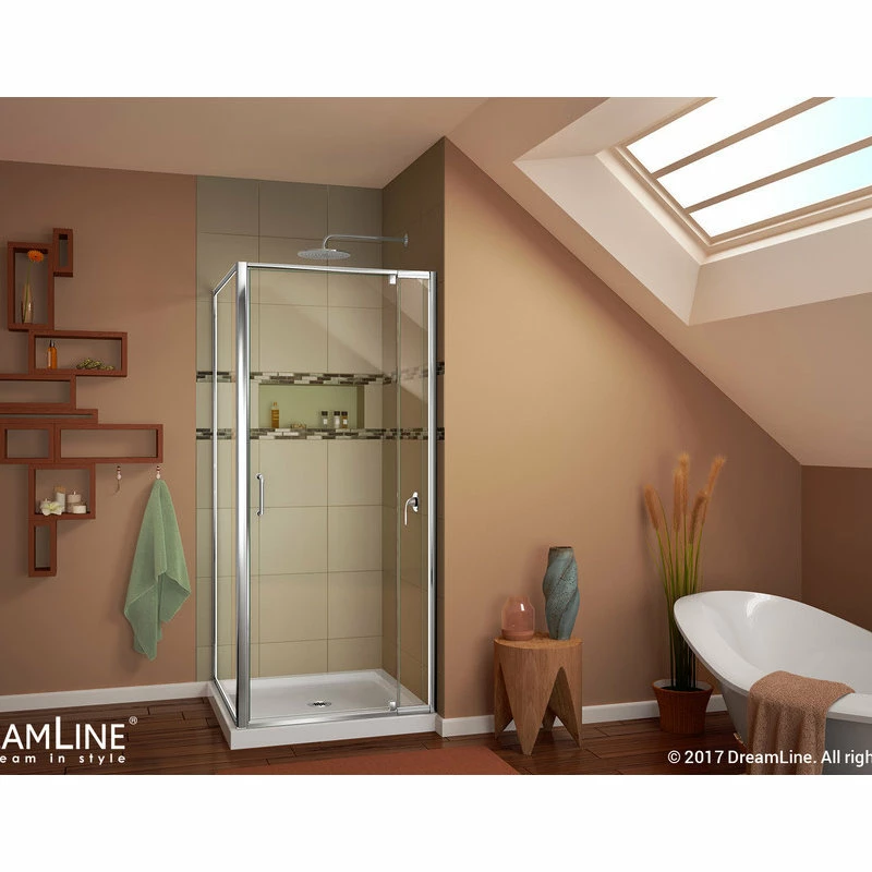 This beautiful and efficient DreamLine shower kit includes a FLEX pivot shower door and a coordinating SlimLine shower base. The FLEX is a fully adjustable shower door that can be customized to fit your shower space for an easy installation. The SlimLine shower base incorporates a low profile design for a sleek modern look. DreamLine shower kits offer a complete solution to transform a shower space.