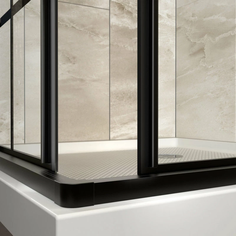 - Kit Includes: French Corner Enclosure and SlimLine; Shower Base