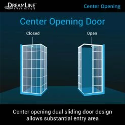 The FRENCH CORNER sliding shower enclosure from DreamLine; will make you feel like you are on a European vacation every time you step in the shower. The FRENCH CORNER is designed for a corner installation providing an effective solution to maximize space. The French black window pane design and hardware finish add bold style to any modern bathroom. The four panel configuration made of 5/32 in. thick clear ANSI certified tempered glass includes two corner-opening sliding doors to create a spacious center walk through. Update the style in your bathroom with the FRENCH CORNER sliding shower enclosure and shower base. DreamLine; has the ultimate solution for your shower project.