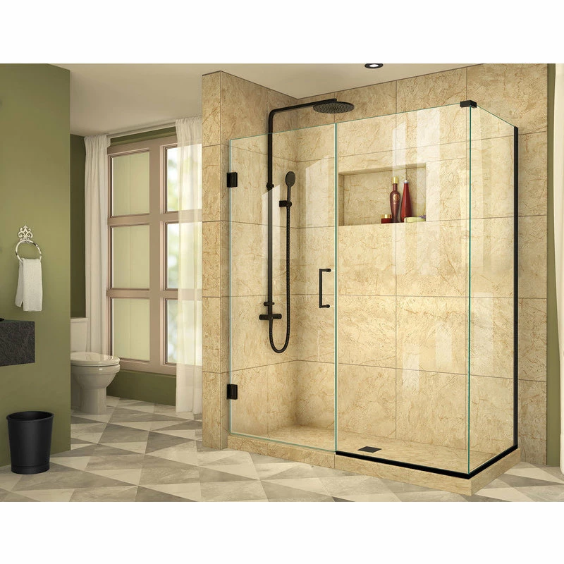 The UNIDOOR PLUS shower enclosure from DreamLine is perfectly designed to accommodate today’s trends. It has a classic frameless design with three hardware finish options helping it enhance any bathroom style on any budget. With an incredible range of sizes to accommodate finished/tiled shower openings from 23 to 61 inches wide the versatile UNIDOOR PLUS shower enclosure adds an extra splash of class with an anodized aluminum U-channel. The UNIDOOR PLUS shower enclosure combines premium 3/8 in. thick ANSI certified tempered glass with a sleek frameless design for the look of custom glass at an unparalleled value. With clean lines, modern accents, an upscale look and a choice of clear or frosted (band) privacy glass, the UNIDOOR PLUS shower enclosure adds a touch of timeless style to any bathroom space. DreamLine has the ultimate solution for your shower project. Glass is treated with DreamLine exclusive ClearMax?? water repellant and stain resistant coating for superior protection and easy maintenance.