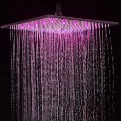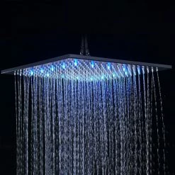 This 12″ Oil Rubbed Bronze LED Rain Shower Head will turn your shower into one that looks exceptional. If you already have oil rubbed bronze in your bath fixtures, it makes perfect sense to invest in oil rubbed bronze shower head. This high tech rain shower head powers the LED lights using a built in hidden dynamo. The lights will automatically turn on when water pressure is turned on. Modern Stylish Design finished in dark oil rubbed bronze shower head made to match or stand out from your other bathroom fixtures. This modern LED shower head is made out of Stainless Steel, so its made to last.