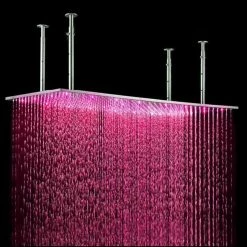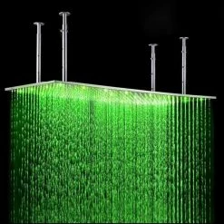 This Rectangle Ceiling Mount LED Rain Shower Head is manufactured using superior grade stainless steel and looks spectacular, complementing any modern shower decor. Large in size (20″ X 40″), the brushed nickel LED shower head magnificently lights up your shower to offer you an assuaging bath experience. At 0-30 degrees temperature, you enjoy blue LED, which turns into green at 30-40 degrees. Further, at a shift of temperature to 41-50 degrees, the LED turns red. Up the temperature a little more and see the flashing red LED.