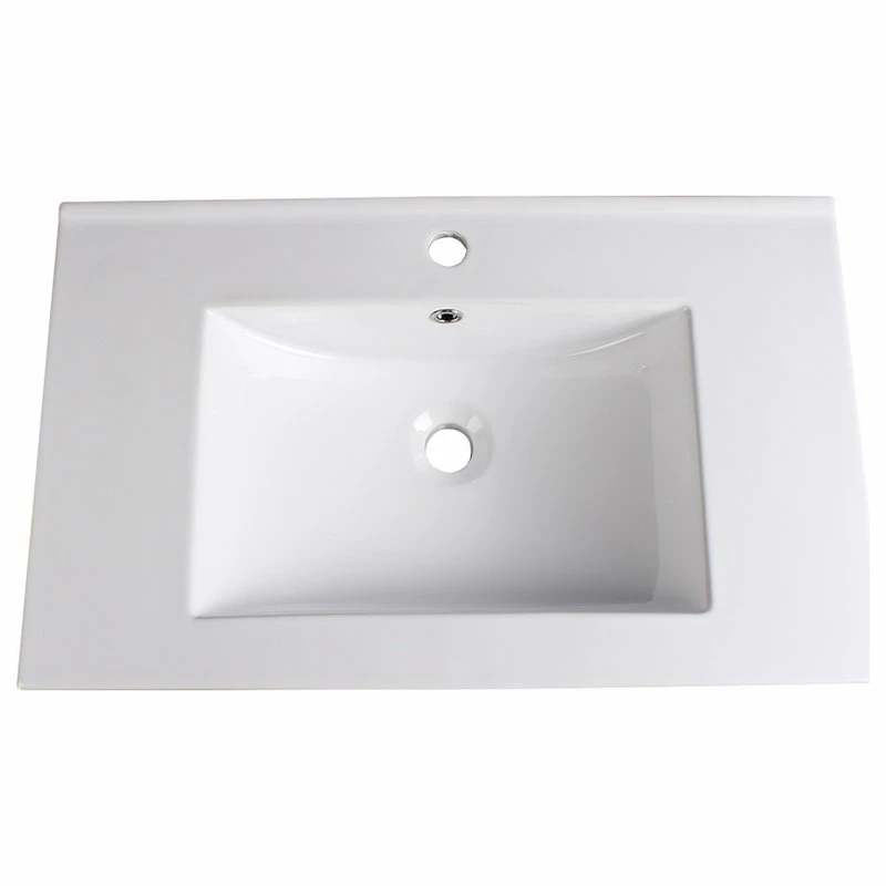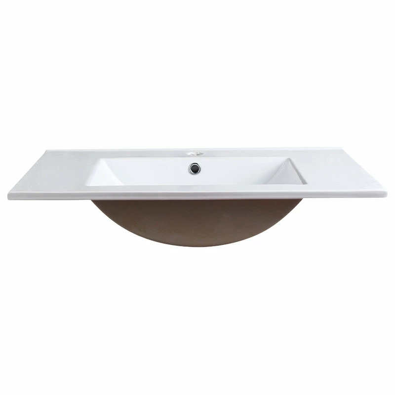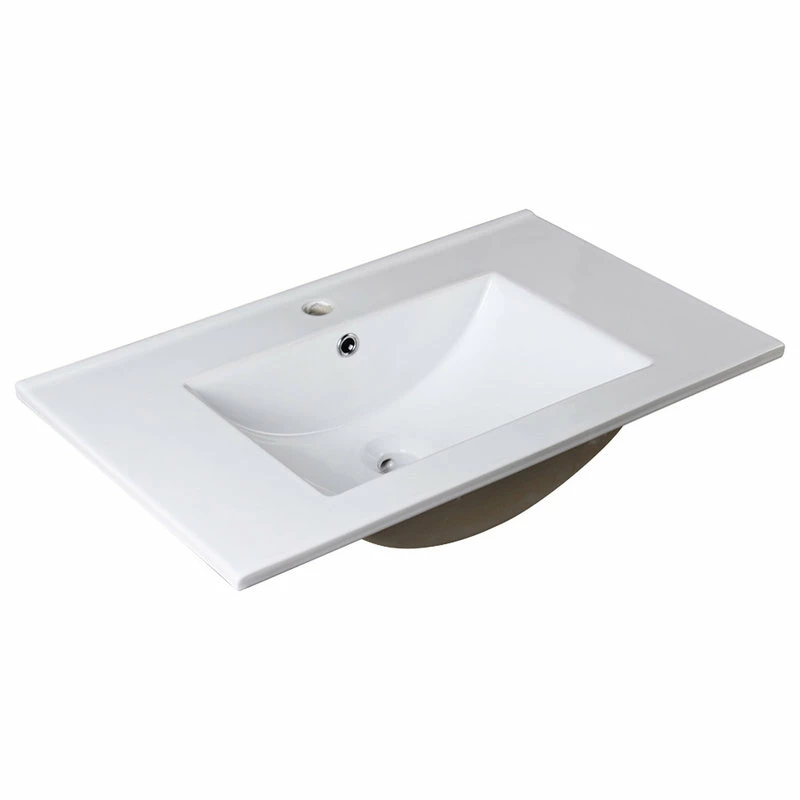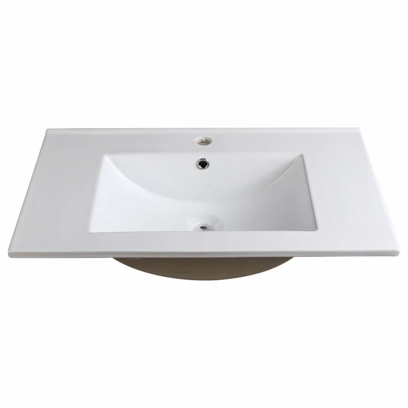 This classic ceramic integrated sink and countertop with overflow would look marvelous in a traditional or contemporary setting. The White ceramic, coupled with the clean rectangular shape has universal appeal and adds a fresh touch to any space. This Fresca Allier integrated sink and countertop features a single hole faucet mount and is available in a variety of sizes, to perfectly accommodate any bathroom design. This particular sink and countertop measures 30″ in width.