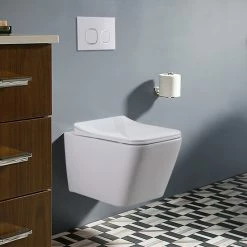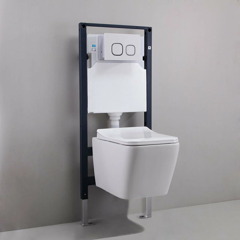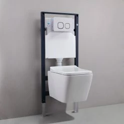 Give your bathroom a sleek, minimalist look with this innovative wall hung toilet. It features a sleek design with the white finish, transforming any bathroom into a modern paradise. The wall-mounted design easily hides the toilet tank to help small spaces look clean and uncluttered, while still offering simple access to the plumbing system through the push plate. What’s more, it has an elongated seat for added room and comfort. High-performance dual-flush allows to choose partial or full flush to suit your needs. A wonderful addition to any bathroom!