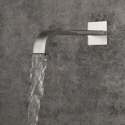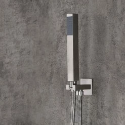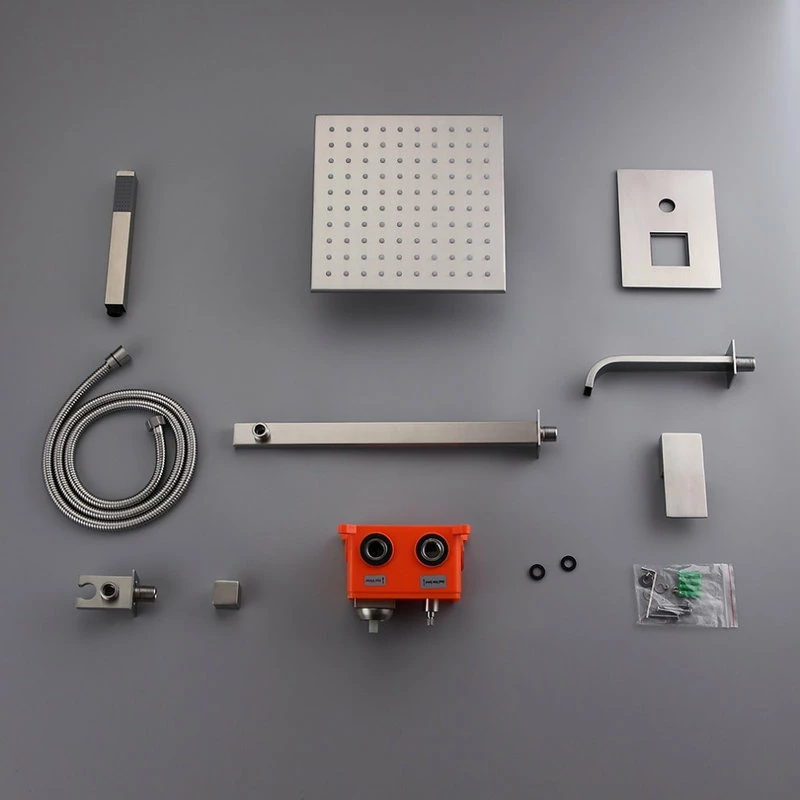 With the ultra-contemporary styling, Dree Faucet Collection features 90 Degree that brings a clean, minimalist aesthetic appeal to your home. Featuring a square rain shower head, this shower system from Dree Collection provides luxurious shower experience, soothing, refreshing enjoyment. Equipped with the hand shower kit, it offers extended reach, maneuverability to aim the water to your skin, complement your rinsing needs., a tub spout fixing at the bottom, makes the filling of a tub, washing of feet, pets a breeze. Coated in a refined brushed nickel finish, it will add a simple, yet upscale look to your bathroom.
