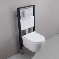 Infuse your bathroom in style with this modern stylish toilet. Featuring simple clean lines with curved details, this wall-hung toilet enjoys a concise elongated bowl style that offers an ideal solution for smaller baths and powder rooms. With wall-mounted dual-flush push button, it offers 1.6 gallons on full flush and 1.1 gallons on partial flush that saves water without sacrificing performance for the appropriate job. Plus, mounting hardware is completely concealed to give it a sleek, seamless look that is easy to clean. Made from high-grade vitreous china in pure white finish, this piece may give strong durabilities withstand every day use.