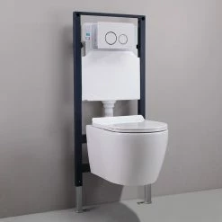– Installs in a wall mounted configuration. Required to be used with steel-frame carrier system installed on 2″x 6″ studs behind wall.