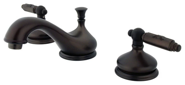 With an old-world feel and elegant design, the Georgian widespread lavatory faucet brings style and durability to any home bathroom. With solid brass construction, this widespread bathroom faucet features use of a ceramic disc cartridge system and is available in four durable and tarnish resistant finishes. The classic lever handles and curved spout give this luxurious faucet the final touches for the perfect bathroom ensemble.