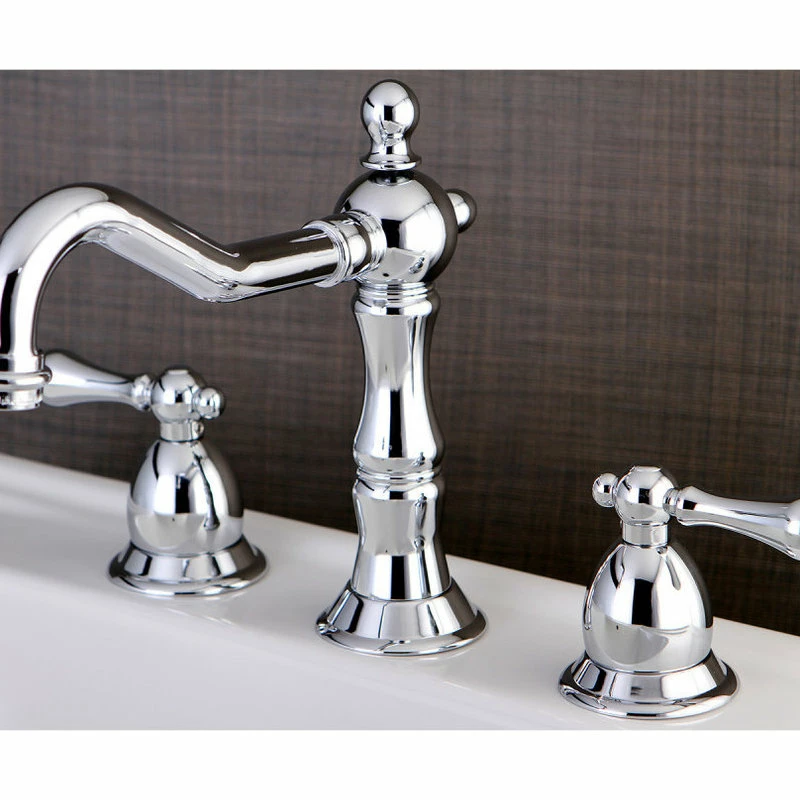 Two Handle Deck Mount, 3 Hole Sink Application, 8″ to 14″ Widespread, Solid Brass Pop-Up, Fabricated from solid brass material for durability and reliability, Premium color finish resists tarnishing and corrosion, 360 degree turn swivel spout, 1/2″ IPS inlets, Ceramic disc valve, 1.2 GPM/4.5 LPM Max at 60 PSI, Integrated removable aerator, 7-1/2″ spout reach from faucet body, 7-1/8″ overall height, Ten Year Limited Warranty to the original consumer to be free from defects in material and finish.