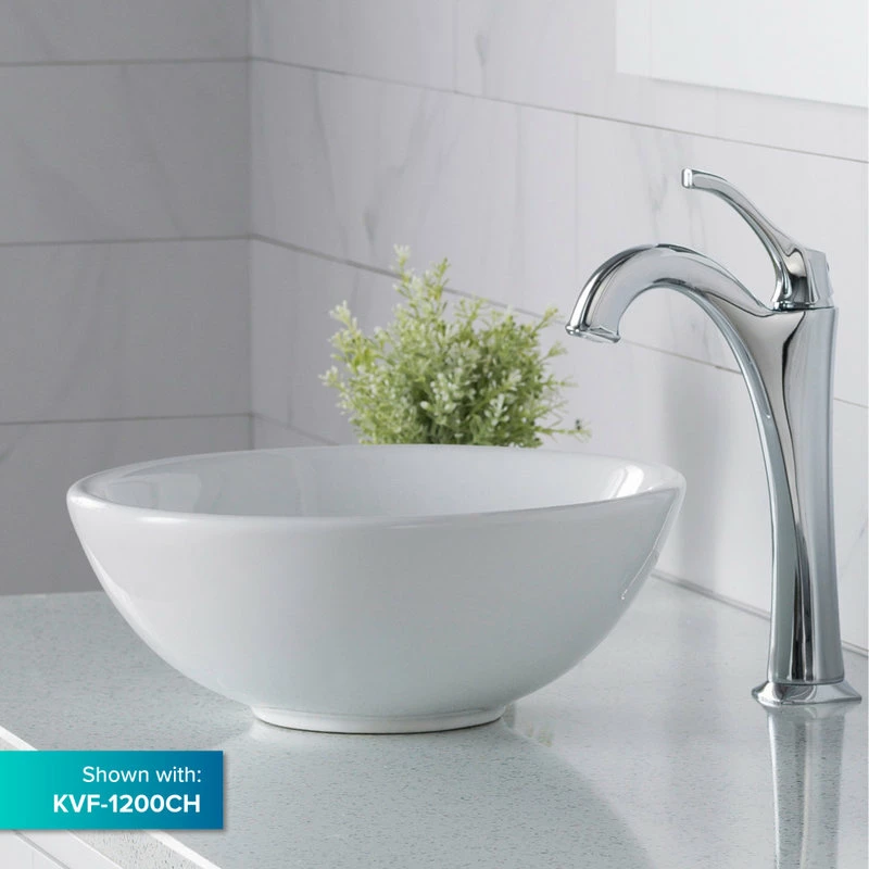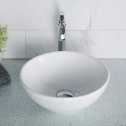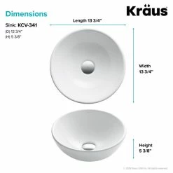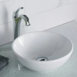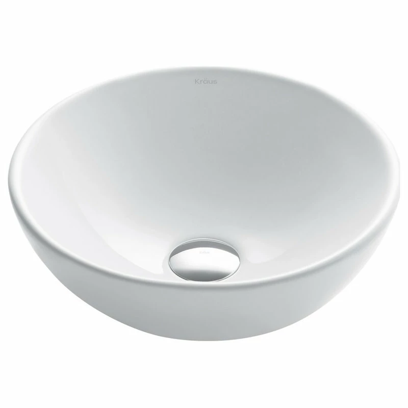 - Product: Kraus Round White Ceramic Vessel Bathroom Sink