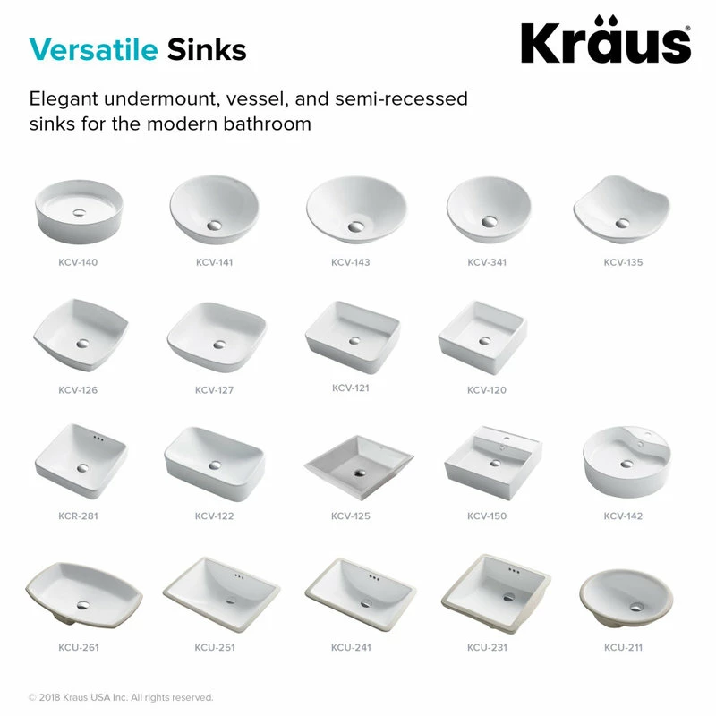 Update your bathroom with the clean look of a KRAUS ceramic sink. The versatile design features a premium baked-on glaze for a high-gloss finish that’s easy to clean, and complements any decor from classic to contemporary.