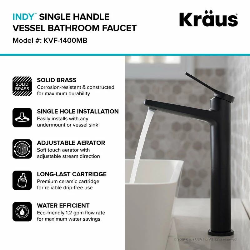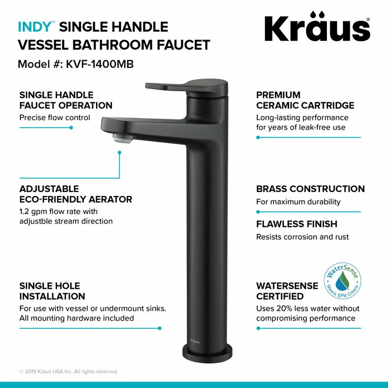 - Product: Kraus Indy Single Handle Vessel Bathroom Faucet with Matching Pop-Up