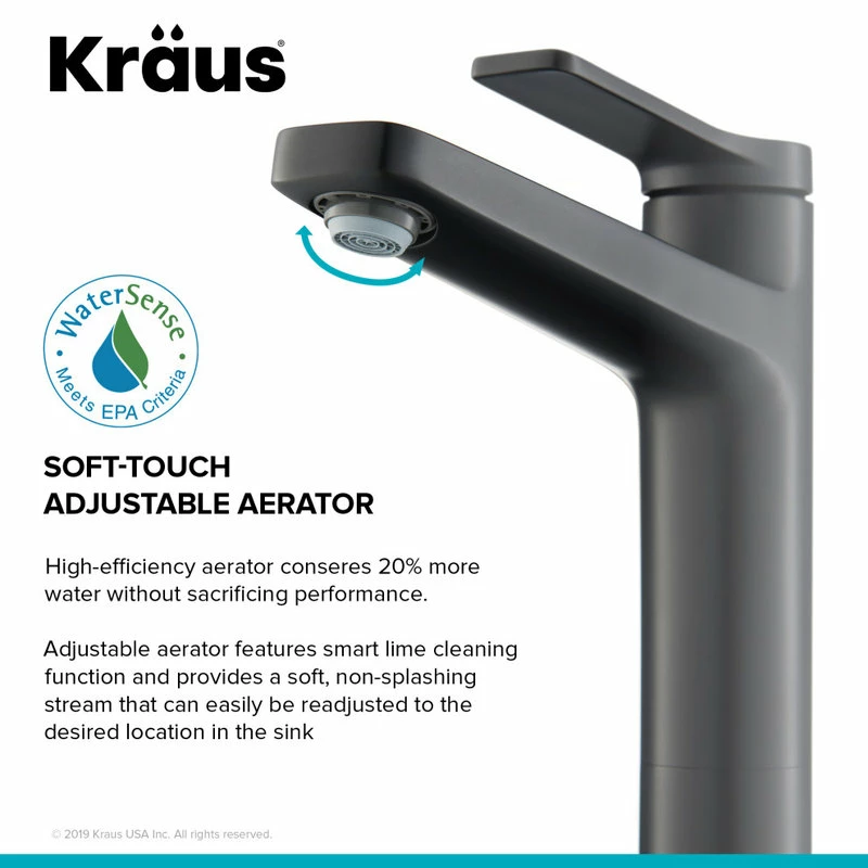 - Included: Kraus Umbrella Pop-Up Drain PU-10, installs with any vessel sink without overflow