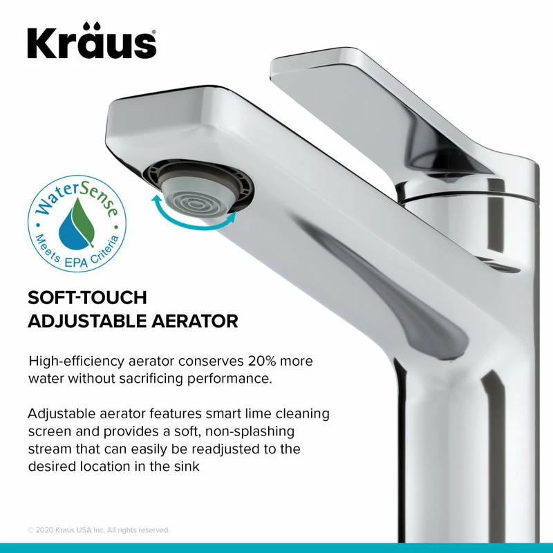- Eco-Friendly Faucet uses 20% less water while maintaining a powerful flow