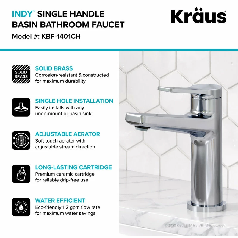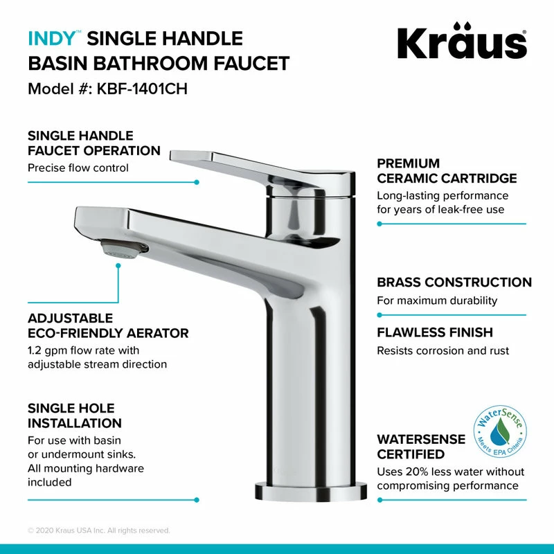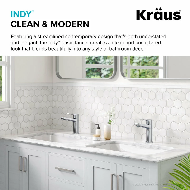 - Product: Kraus Indy Single Handle Bathroom Faucet and Matching Pop-Up Drain with Overflow