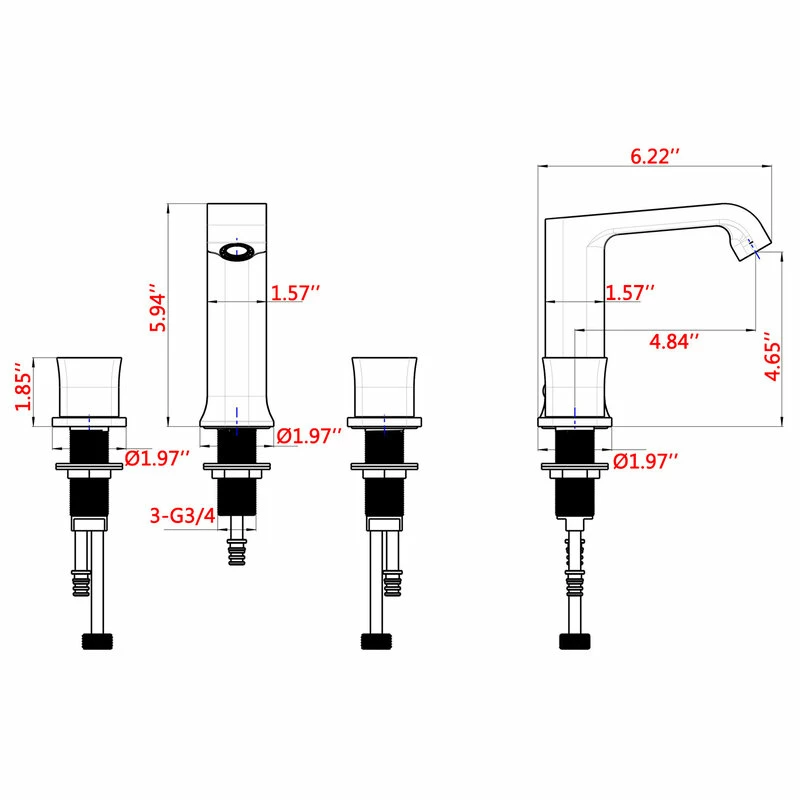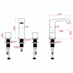 - 3-holes mount compatible with Widespread installations at any distance between 8 and 16 inches. Hole size: 32-35mm/ 1.25-1.37 inch