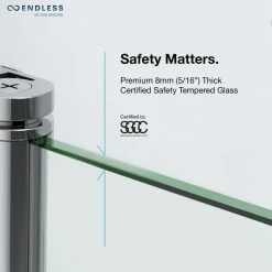 - Premium 8mm (5/16″) thick safety tempered glass. Certified by the Safety Glazing Certification Council (SGCC)