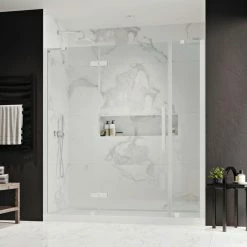 - Frameless reversible door installation with built-in door magnet for a secure and tight close. No more leaks, no more wet floors.