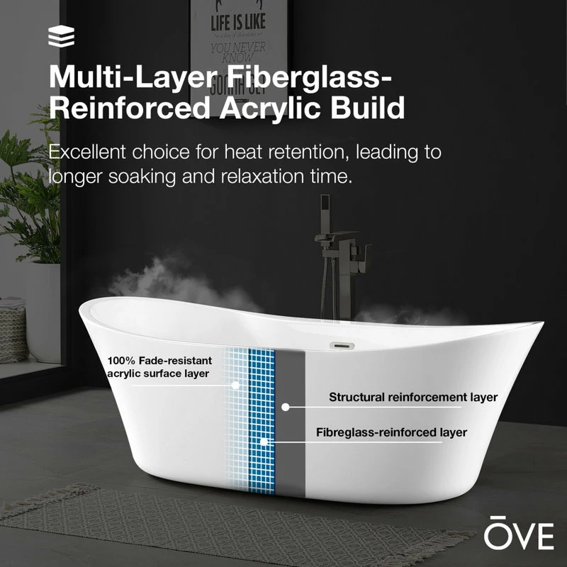 - OVE warrants all acrylic freestanding bathtubs to be free from defects in workmanship and materials under normal use and service for a period of twenty-five (25) years from the initial date of purchase.