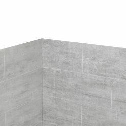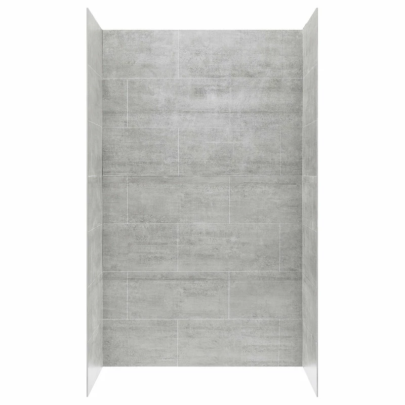- Three-piece wall set for the Misty 48-in alcove shower kit, featuring an all-over horizontal Gray tile pattern