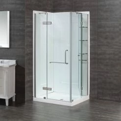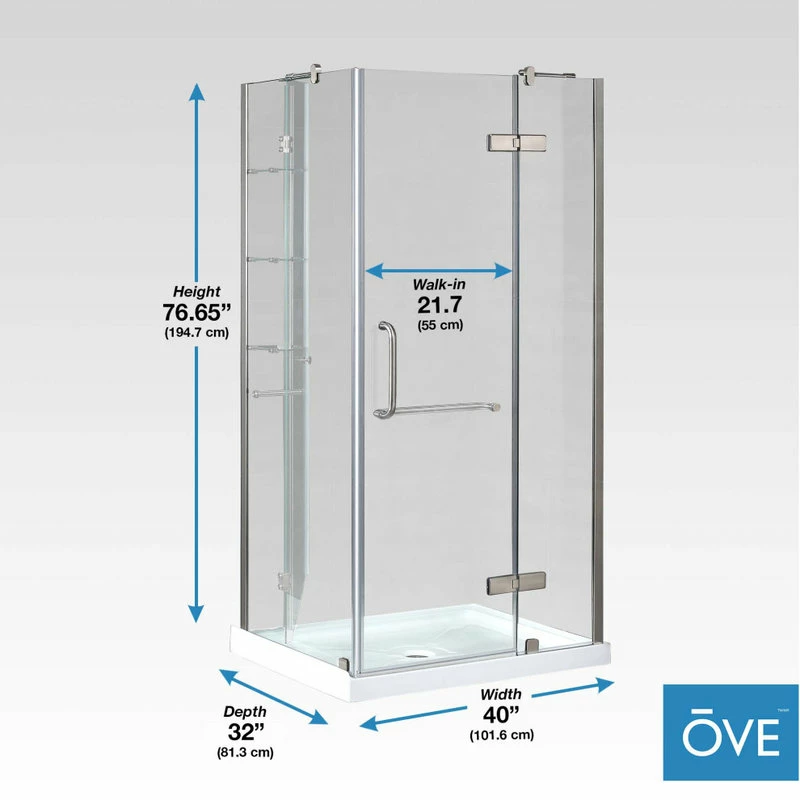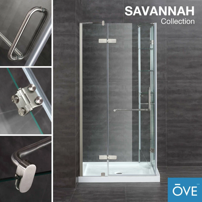 The Savannah shower kit by OVE Decors is a compact and stylish corner design that’s easy to set up and easy to maintain. It has a hinged, reversible, 10mm thick glass door that makes it an easy fit for any bathroom space, and a frameless overall design with satin nickel hardware that’s contemporary and appealing. The Savannah shower kit can be purchased as a whole or as individual parts.