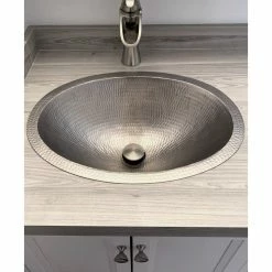 19″ Oval Under Counter Hammered Copper Bathroom Sink in Nickel Features: