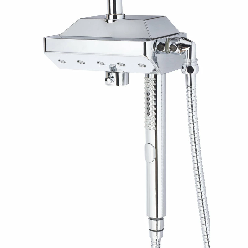 The PULSE AquaPower is an innovative addition to our product line. The design and style of the AquaPower gives your bathroom a fresh and modern look by simply replacing your showerhead. The handshower’s magnetic technology allows for easy return to the handshower holder. Surface mounted and completely pre-plumbed, easily retrofit your existing shower without a remodel. Oversized showerhead with soft tips to clear mineral buildup for long lasting performance. Utilize any two functions simultaneously or separately. Showerhead with air infusion technology. 180¬∞ horizontal pivoting shower arm.
