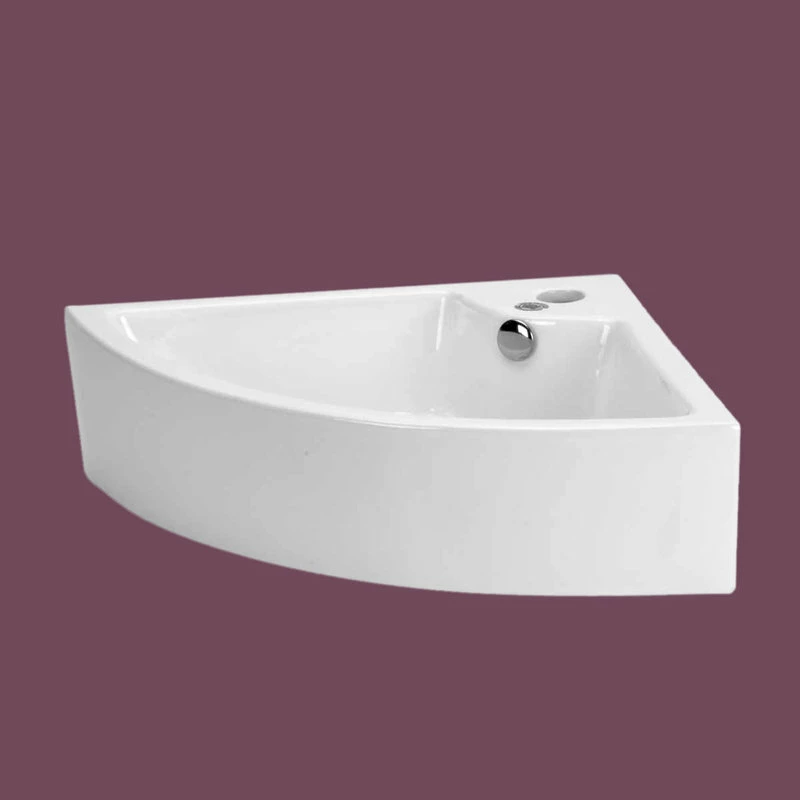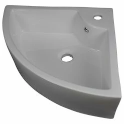 - Durable, easy clean contemporary Corner vanity vessel sink.