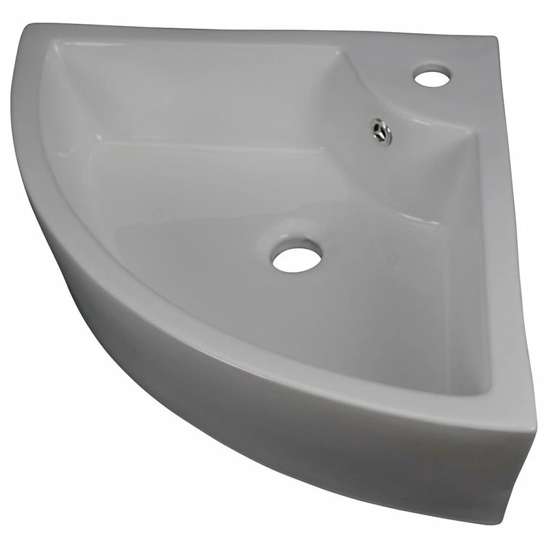 Item 15286 HUDSON WHITE CORNER COUNTERTOP BATHROOM VESSEL SINK The 25-7/8 Inches wide Hudson Bathroom Corner Countertop Vessel Sink from Renovators Supply Manufacturing features a compact design and sleek lines to keep your bathroom spacious and beautiful.