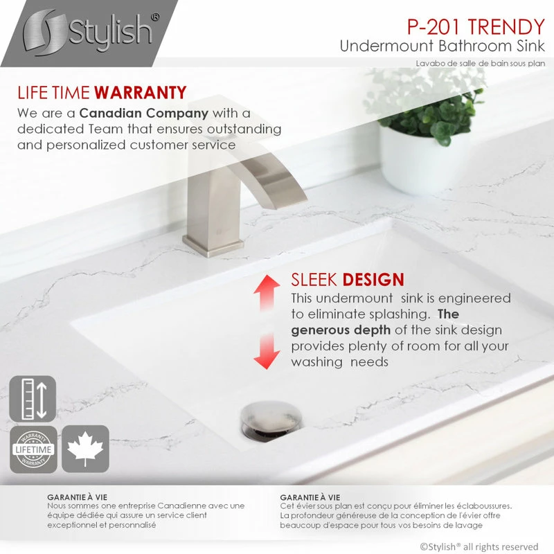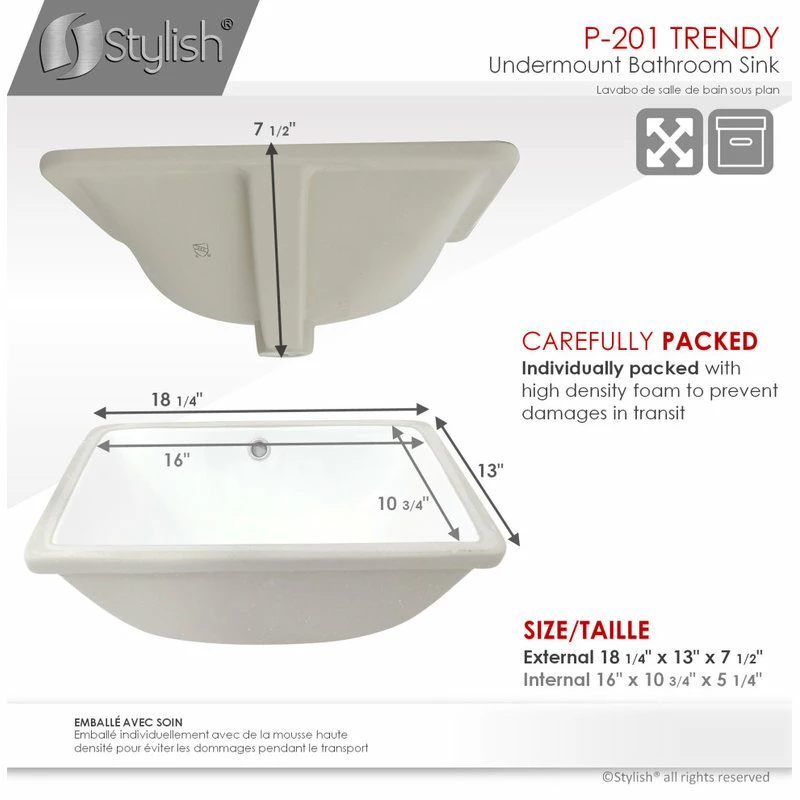 Combining high quality ceramic, ultra resilient craftsmanship, and stain resistant properties, this stunning white porcelain rectangular undermount sink is a beautiful, timeless addition to your home.