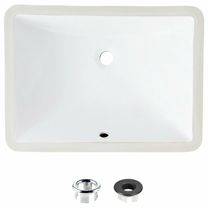 This bathroom undermount rectangular ceramic porcelain sink features a classic, elegant design that will enhance the look of any bathroom and will free up counter space. The sink’s glossy finish makes it easy to clean and guarantees a flawless appearance for years to come.