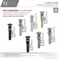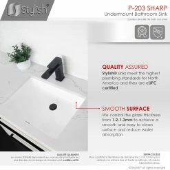 Upgrade bathroom décor effortlessly with this Stylish porcelain undermount sink . No need to spend a small fortune on pricey home decorators when you can simply get yourself this beautiful porcelain white sink, right? The P-203-Sharp ceramic sink basin by Stylish offers understated elegance with a modern touch. The simple rectangular shape fits well into any bathroom décor.