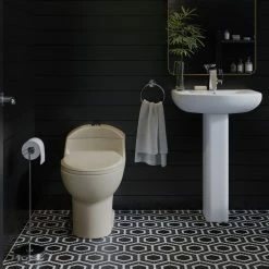 - Seamless porcelain one-piece with an easy-to-clean design.