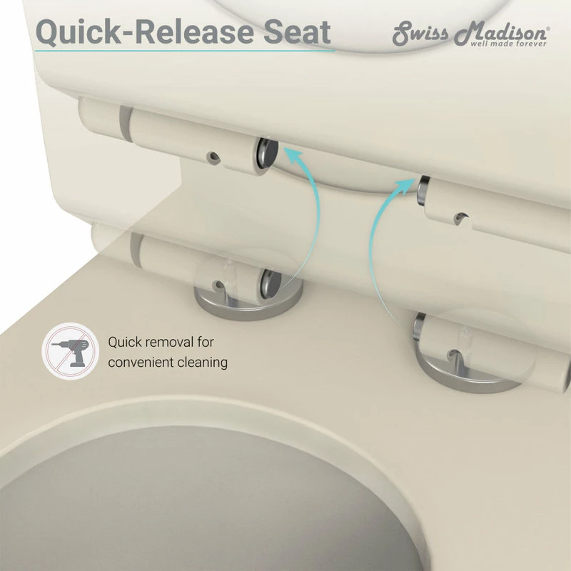 - Quick-Release seat can be unlatched from the toilet for easy removal and convenient cleaning; no tools required.