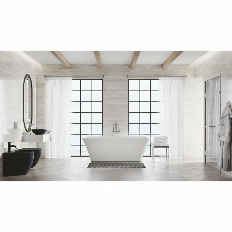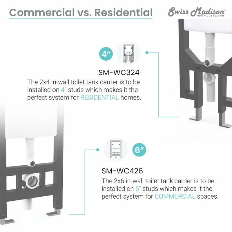 The St. Tropez Wall hung toilet bowl saves precious space for residential and commercial bathrooms. The Carrier Tank is completely concealed, still offering simple access to the plumbing system through the actuator plate. The sleekest and seamless design, that is incredibly easy to clean.