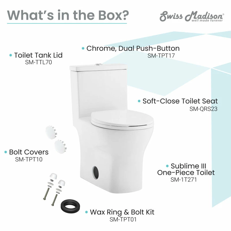 The Sublime III One-Piece Compact Toilet offers a sleek seamless design. The round, compact bowl shape is perfect for any space and provides exceptional comfort. Its dual-flush function conserves water without compromising on power, while our Vortex flush technology uses powerful dual nozzles to keep your bowl cleaner than standard rim holes.