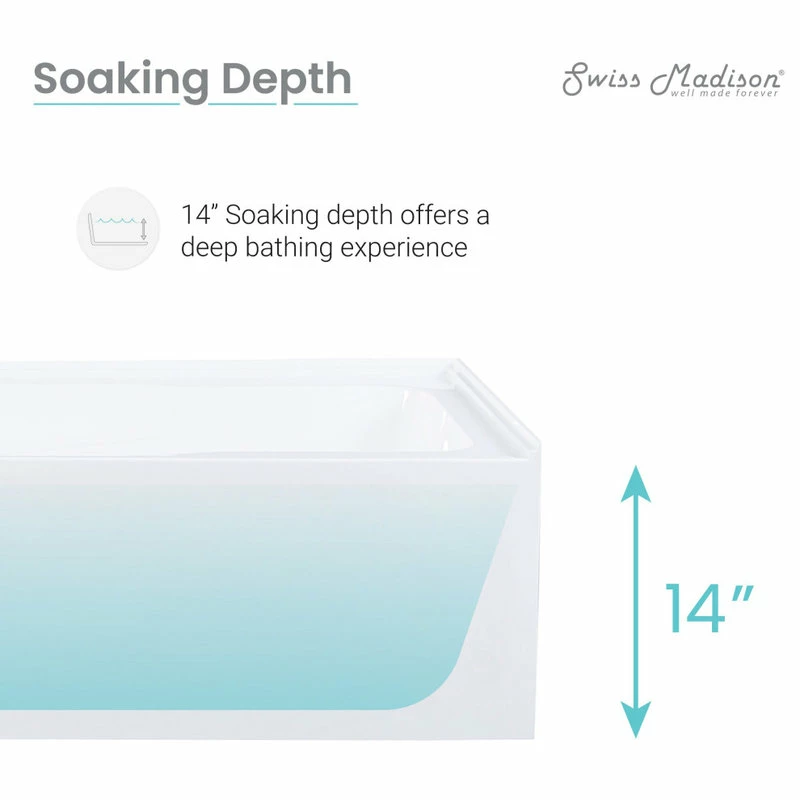 The Voltaire Alcove Bathtub was designed to compliment any bathroom. This tub features integral tile flanges and a sleek front apron for an easy installation. Its deep soaking depth, lumbar support and integrated armrests make this bathtub for rest and relaxation. Its clean design makes the Voltaire a great addition to any space.