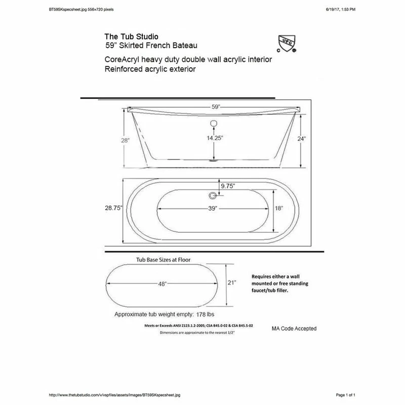 - Heavy duty CoreAcryl acrylic tub with reinforced thick acrylic skirt