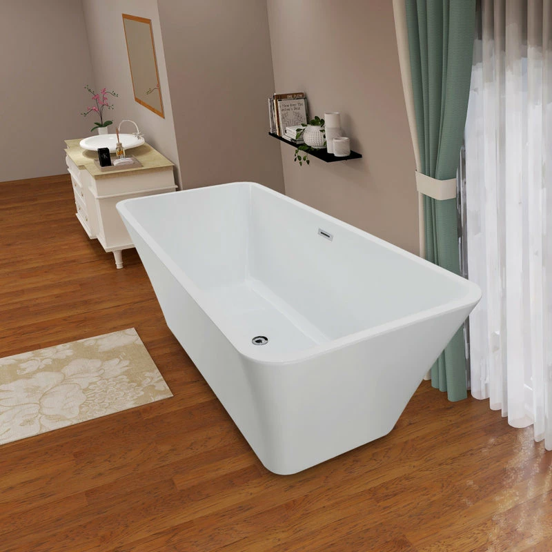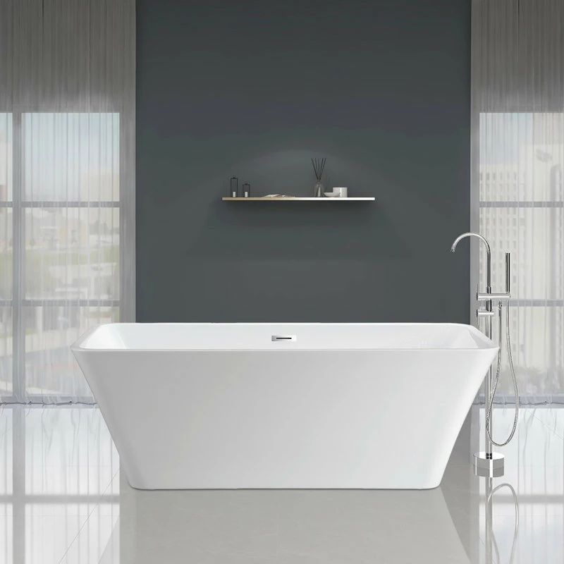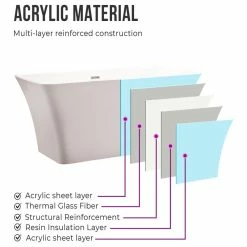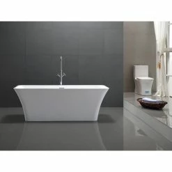 - 67″ freestanding tub with chrome pop-up drain, chrome slotted overflow and flexible drain hose